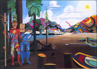 | Lawrence Yuxweluptun, Coast Salish- Scorched Earth, Clear-cut logging on native sovereign land, shaman coming to fix |