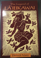 Isolated by several miles of bad road, he is able to maintain the tranquility he desires for his work. The subject matter in most of Varez’s work is inspired by traditional Hawaiian legends, integrating mythological figures in scenes with flora and fauna typical of the diverse Hawaiian environment. His work is informed by graphic interpretations of traditional Polynesian designs, as seen, for instance, in Hawaiian quilts, and is especially rich in imagery from the Hawaiian rainforest. I especially love his birds.