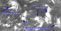HURRICANE? CYCLONE? TYPHOON? They're all the same- officially tropical cyclones. But they just use distinctive terms for a storm in different parts of the world. Hurricane is used in the Atlantic, Caribbean Sea, central and northeast Pacific. They are typhoons (well none of us have ever heard of a typhoon here) in the northwest Pacific. In the Bay of Bengal and the Arabia Sea, they are called cyclones. Tropical cyclone is used in the southwest India Ocean; in the southwestern Pacific and southeastern India Ocean they are severe tropical cyclones.