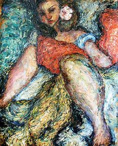 “The Hawaiians are really to me the most beautiful people in the world:, she once said, “no doubt about it – the Hawaiian is a piece of living sculpture. They are strong, serene and proud.” . Using grand swirls of oil Madge portrayed Hawaiian women as solidly fleshed and majestic- larger than life - capturing in rhythmic forms the very essence of their being.