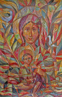 He lives with his family in Stroumbi where he has his workshop. Some consider him to be the greatest contemporary icon artist. I -love his works, not only for the colors but for the birds and floral patterns which appear in his works. Compared with most icons his work exudes warmth and humanity.