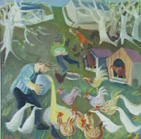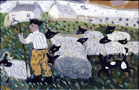 I love her use of colors which at times blends into her shapes, giving that dream-like quality. In many of her paintings, one can almost reach out and touch the animals. My favorite is St. Columba in his garden in Scotland.