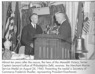 Captain LaRue, a Philadelphia native and a veteran of World War II merchant marine operations in the Atlantic , remained in command of the Meredith Victory until it was decommissioned in 1952. He received American and South Korean government citations for his rescue work, and the Meredith Victory was designated a Gallant Ship by Congress.