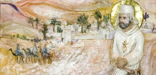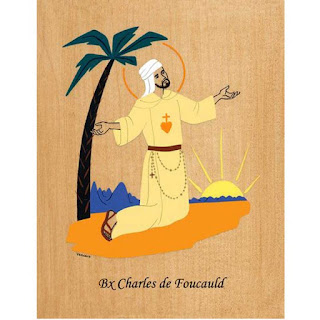 Several of us in the monastery have for years had a devotion to BL. CHARLES DE FOUCAULD. For me it began 45 years ago, before most of the world knew of him. At the suggestion of a friend I went to visit an old woman who had just lost her husband. While we were chatting I asked her about a strange looking wooden rosary with an enamel heart in the Middle. She explained that her husband had found this and became fascinated with its background, thus leading him to discover more about the future saint. She not only gave me the rosary but several books about the man. Upon reading them, I felt a great rapport, for some mysterious reason. Who knows what draws us to another?